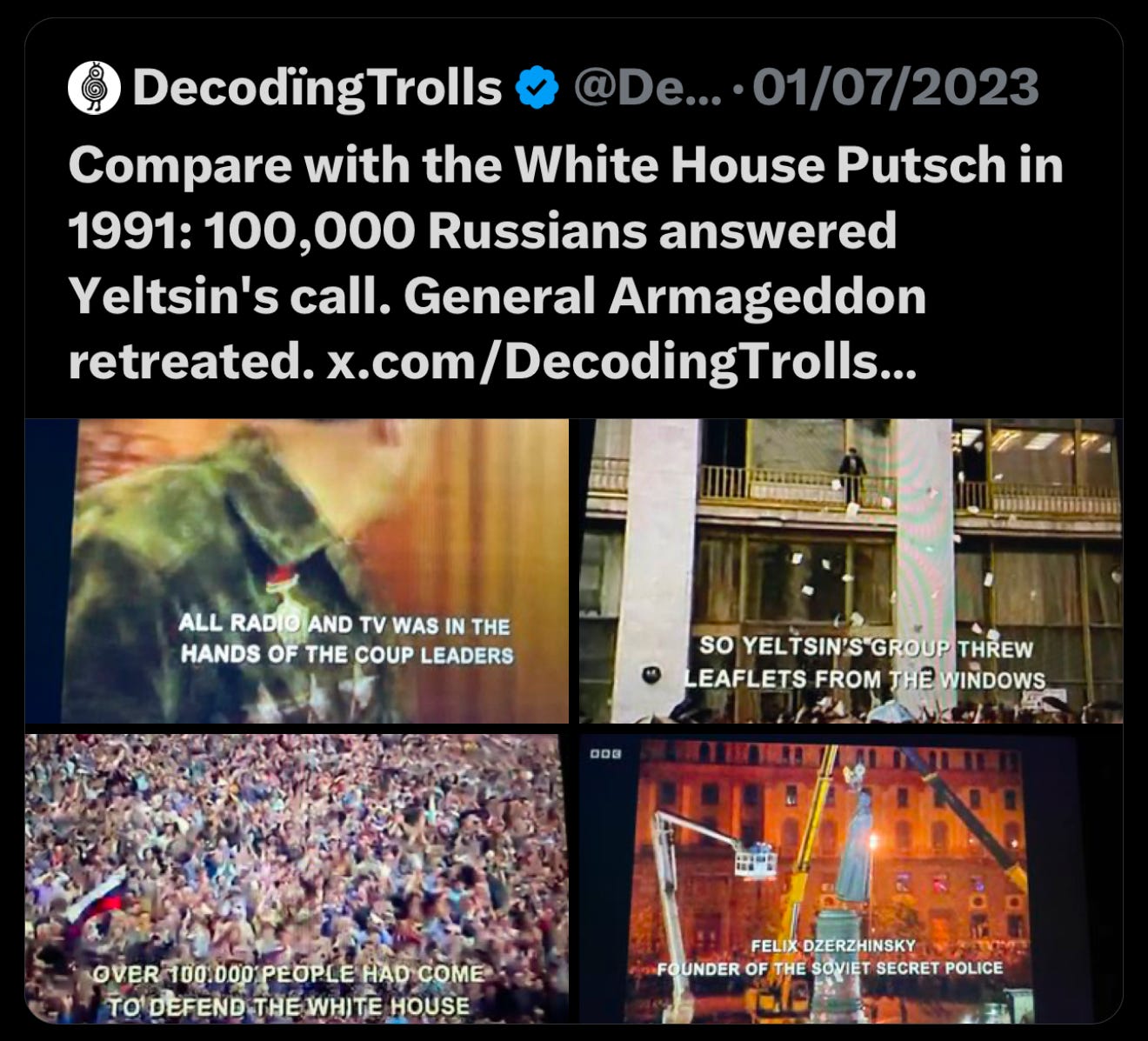 1991 coup plotters (Surovikin and co) become “legitimate” government in 1999, after killing one million Chechens. Jan 6 insurrectionists take over US government and all of its institutions.