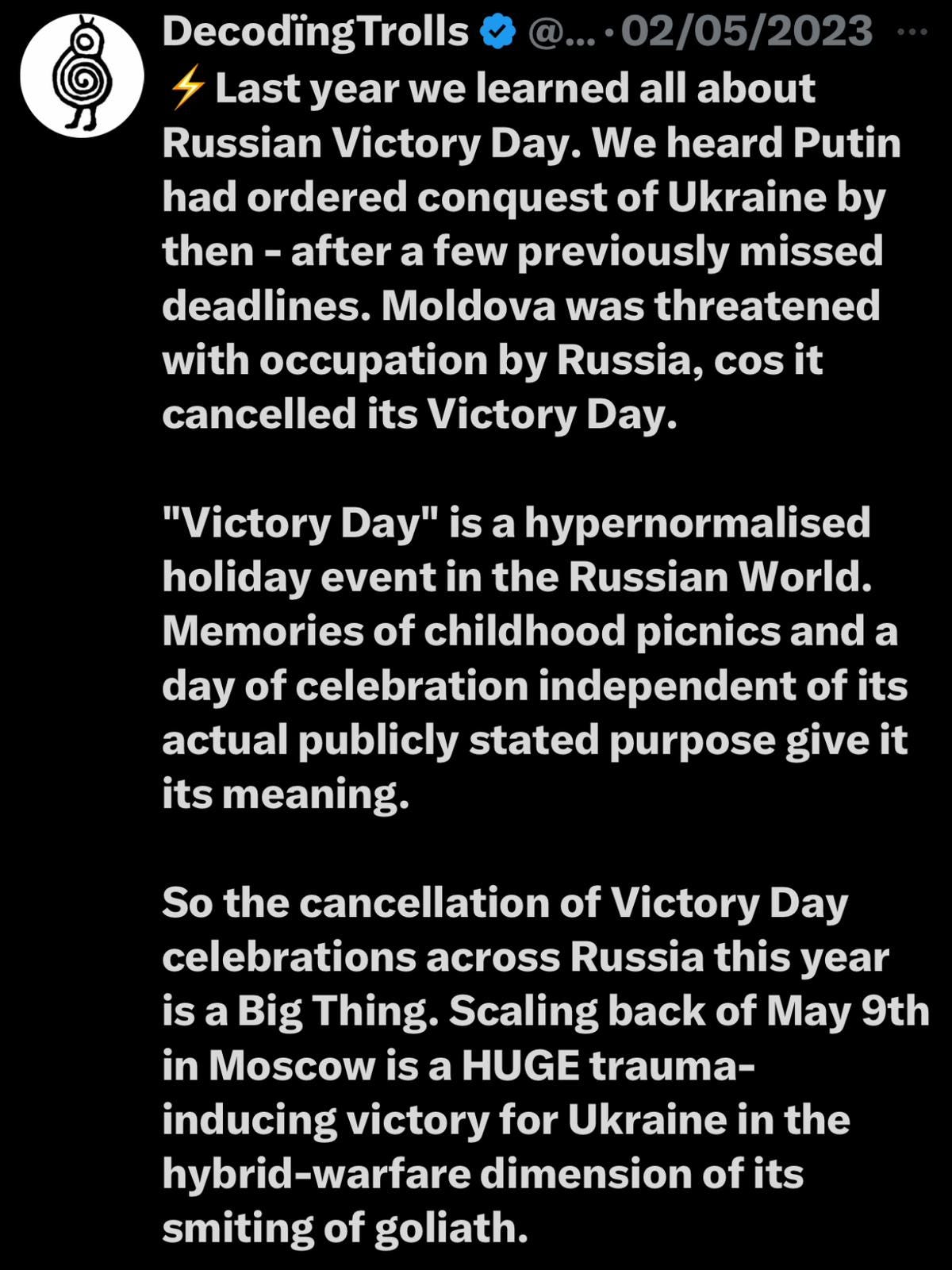 Yet, still these Sirens whose minds are infected by a Mental Archetype of all powerful Ruschia will still be telling us Ukraine must surrender.