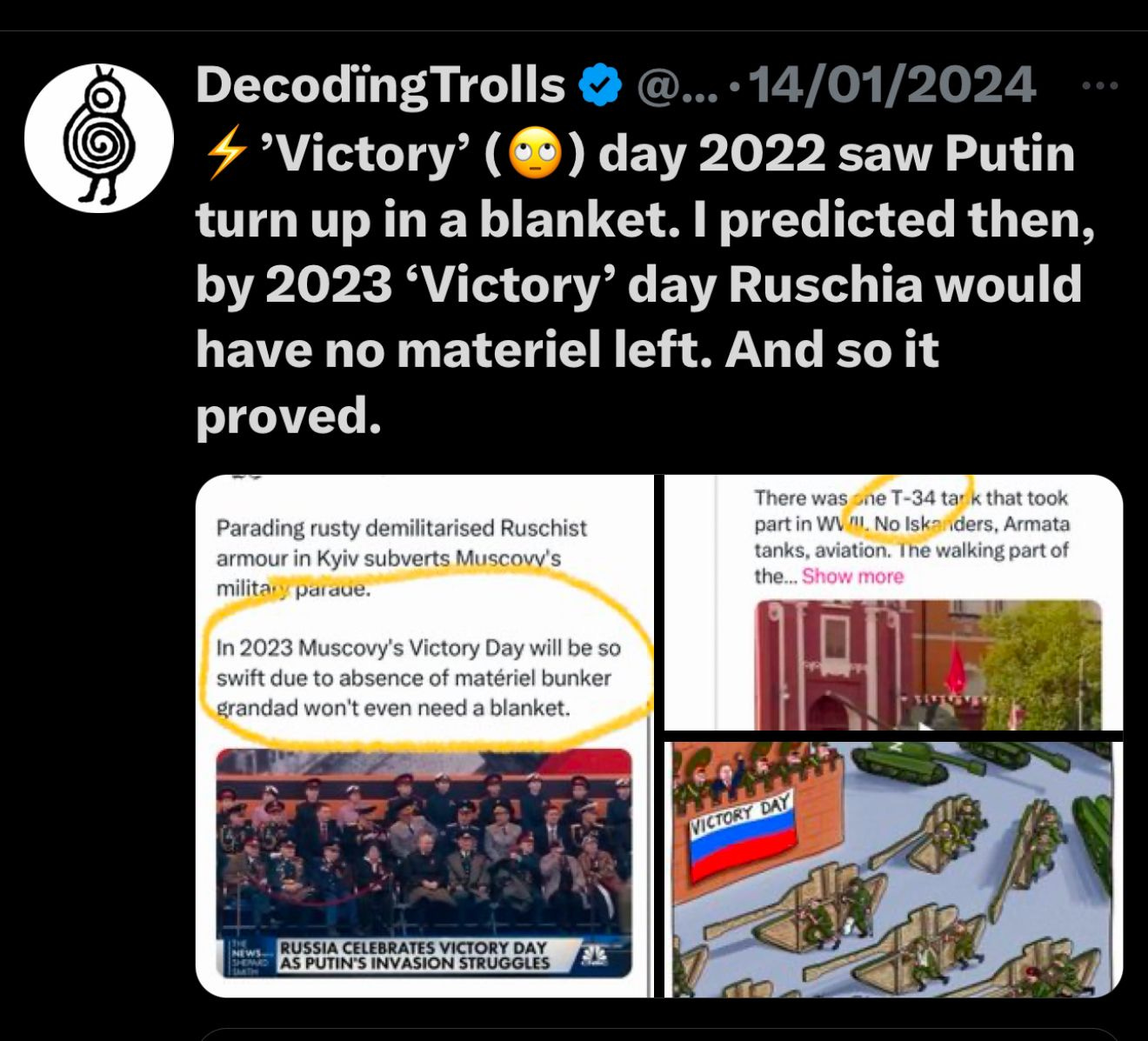 Trolls like ‘Don’t Poke the Bear’ or Lavrov’s Speaking in Tongues concocted proverbs here are all there is.