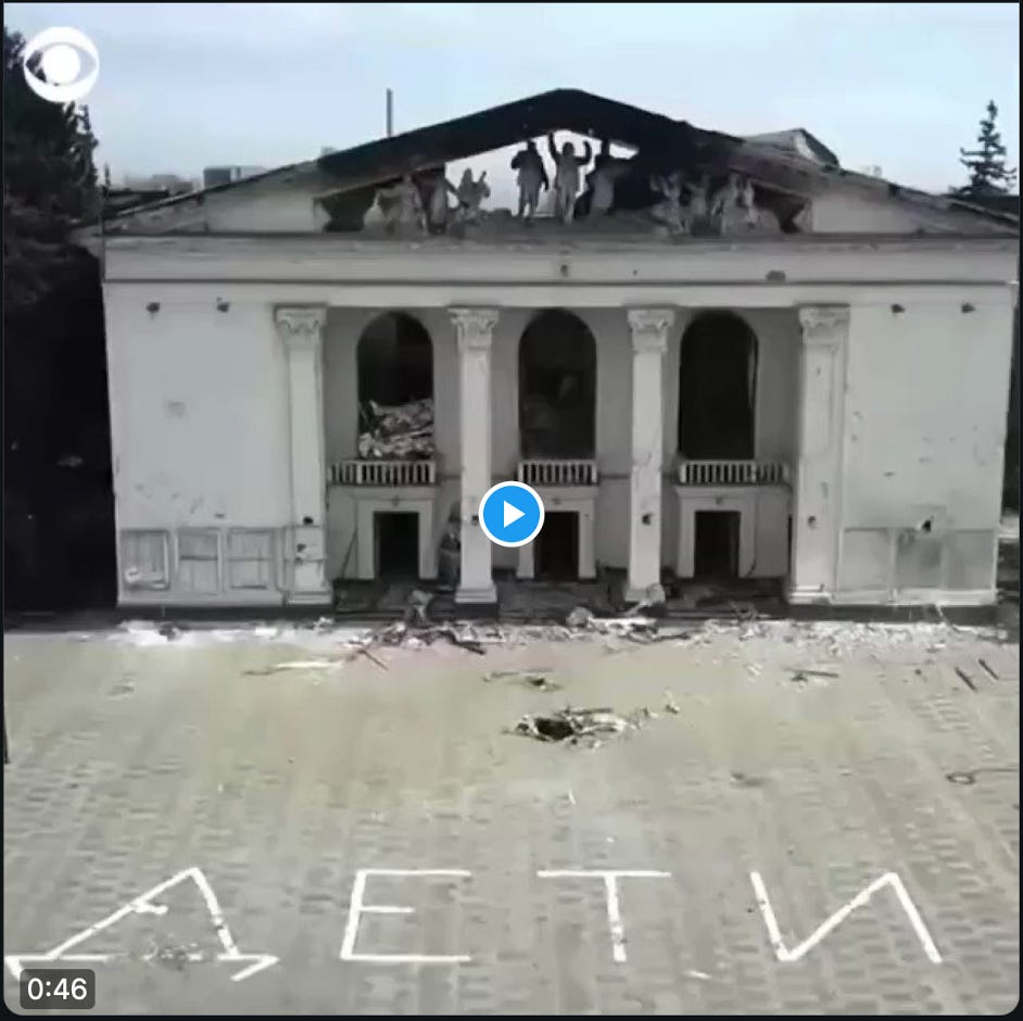 This bomb annihilated our Russian language speaking Ukrainian, her daughter and around five-hundred-and-ninety-eight other native Russian language speaking Ukrainians who thought they were safe there. The Russian language word for children was painted in bright letters in front of the shelter: