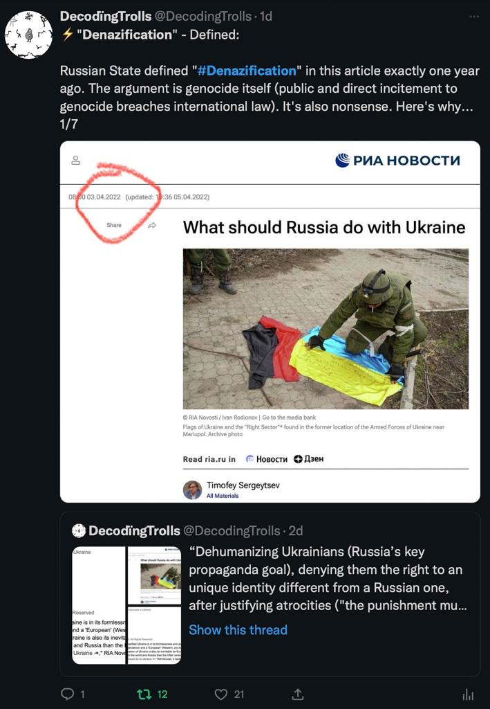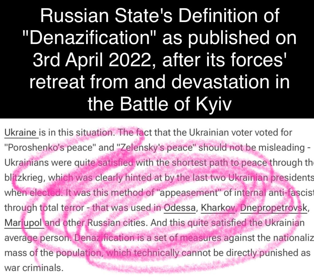 "Denazification" was first defined AFTER Russia lost the Battle of Kyiv, & after it withdrew to focus on failing to capture the Donbas.