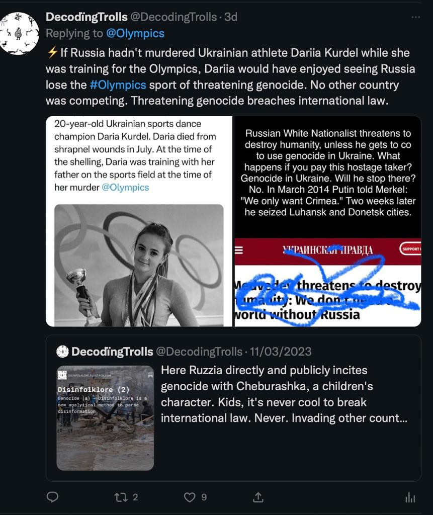 The Russian military strategy of Reflexive Control (which we reference copiously throughout Disinfolklore) is mainstreamed through all instances of Russian disinformation, Russian Disinfolklore, and Russian military activities. Reflexive Control depends on being able to intuit how the target will reflexively react to certain trolls.