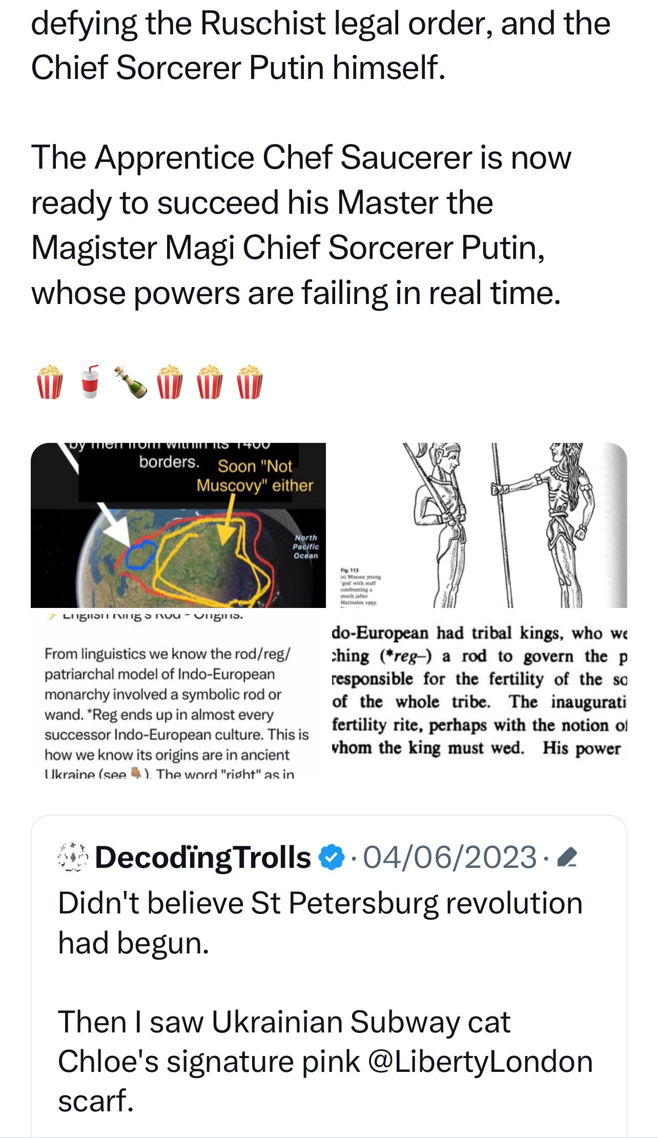 The Chef Saucerer is the Chief Sorcerer's alchemist - this is what Russia "experts" miss about the ABSOLUTE primacy of the Chief Master Sorcerer Putin's relationship with the Chef Saucerer Apprentice - the Alchemist.