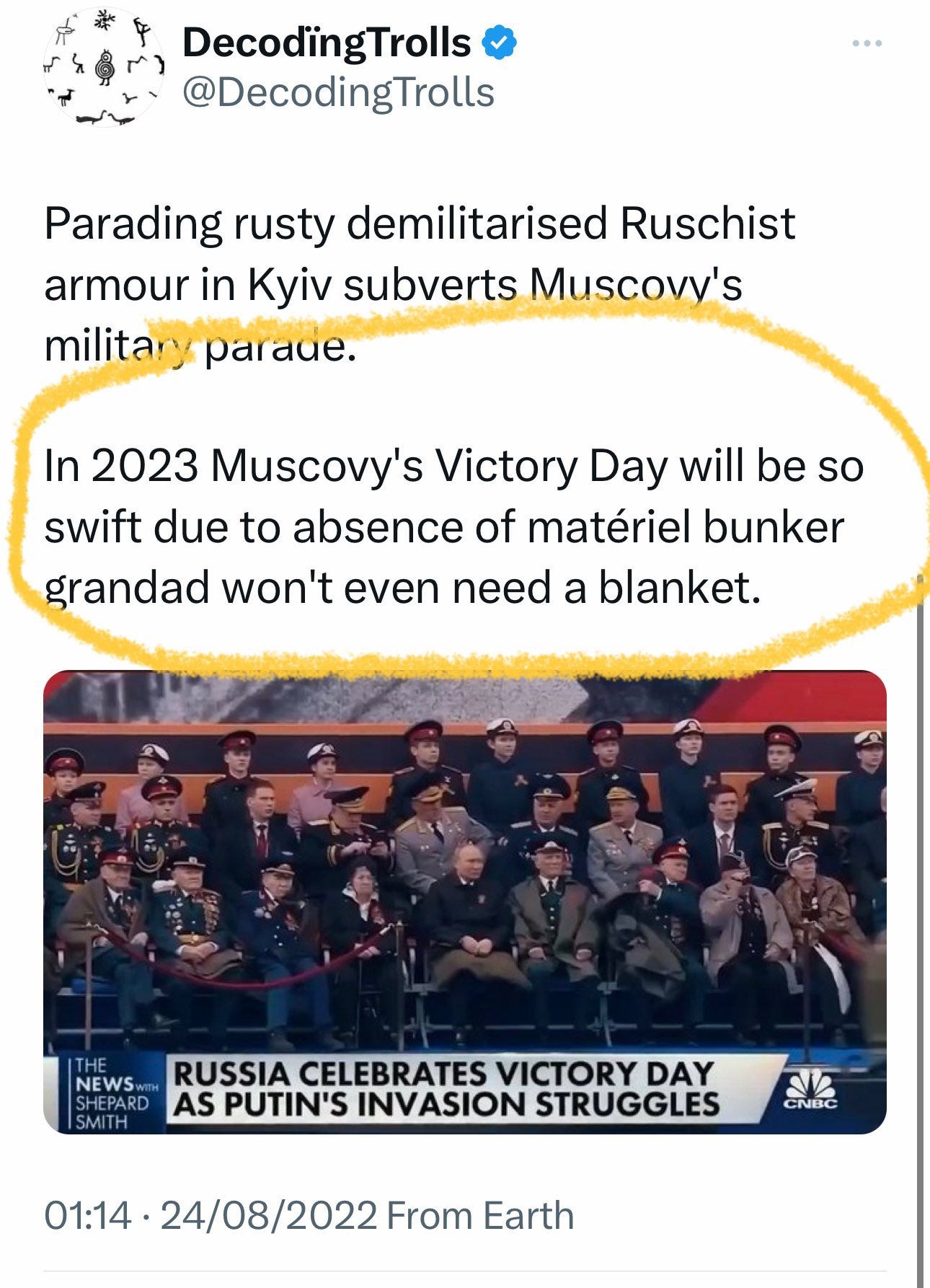 Note how between 1945 and 2022 the collective West was afraid to punish Russia for any of its crimes. Now Ukraine destroys Russia every day, it doesn’t make the news and private companies using Russian state’s annihilation for advertising.