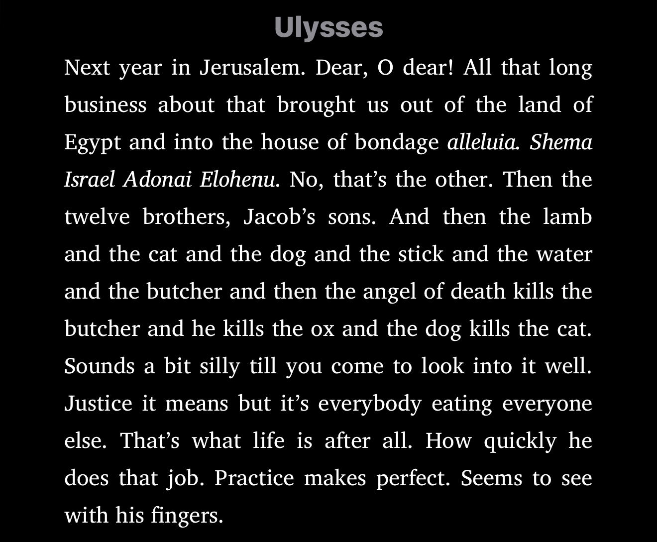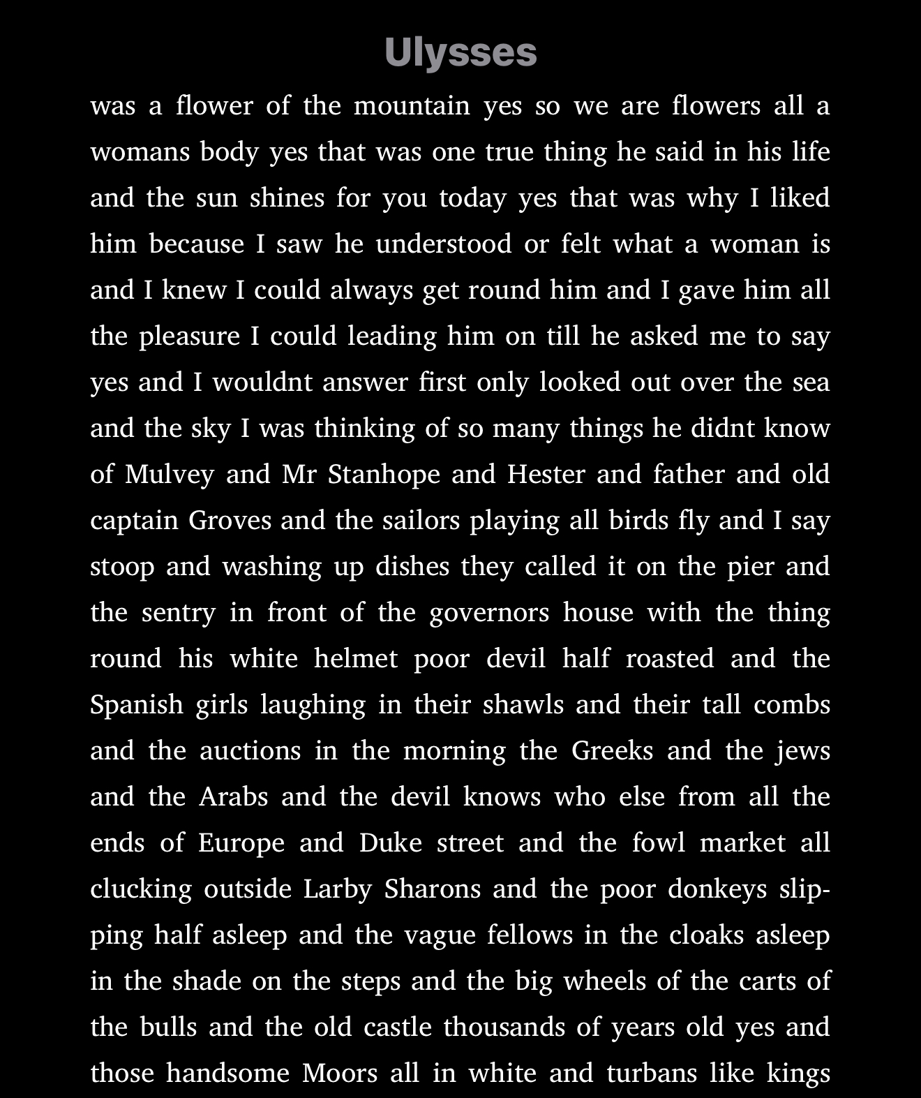 Yet, writing this way in such a conversational style is simply a narrative means of tricking readers, as James Joyce did with Ulysses, into believing what’s said’s real. Authentic.