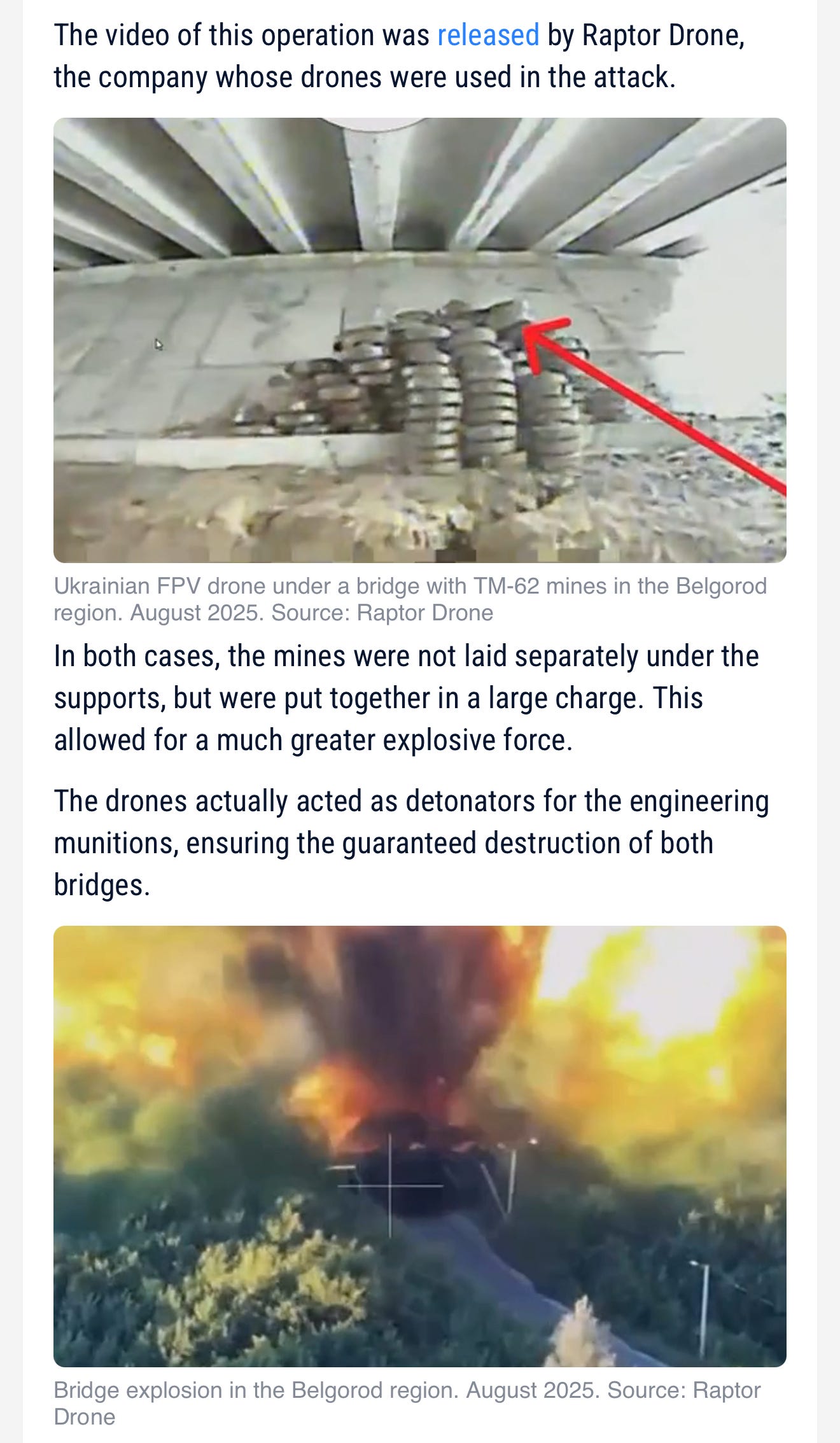 Here Ukraine uses Raptor drones to annihilate two Russian bridges.