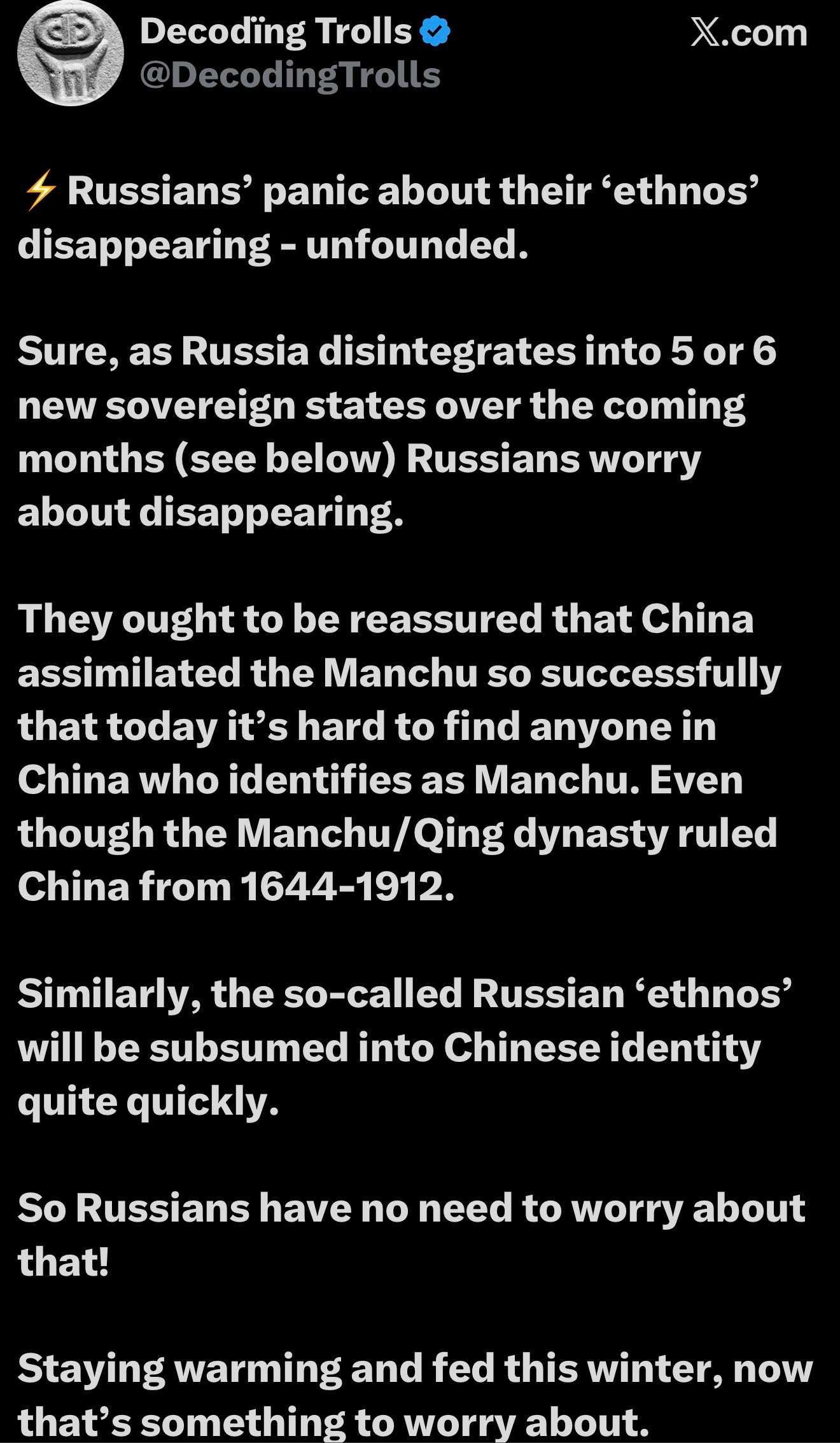 I wanted to situate that description of how I see that reality- that the Russians’ war against us will continue after victory. Even if, as I do in this piece below, I can foresee the gentle eradication of what Putler referred to as ‘the Russian Ethnos’ which has, as we see in Ukraine, a remarkable propensity to commit war crimes - 300,000 or so registered war crimes in Ukraine since Feb 24 2022.