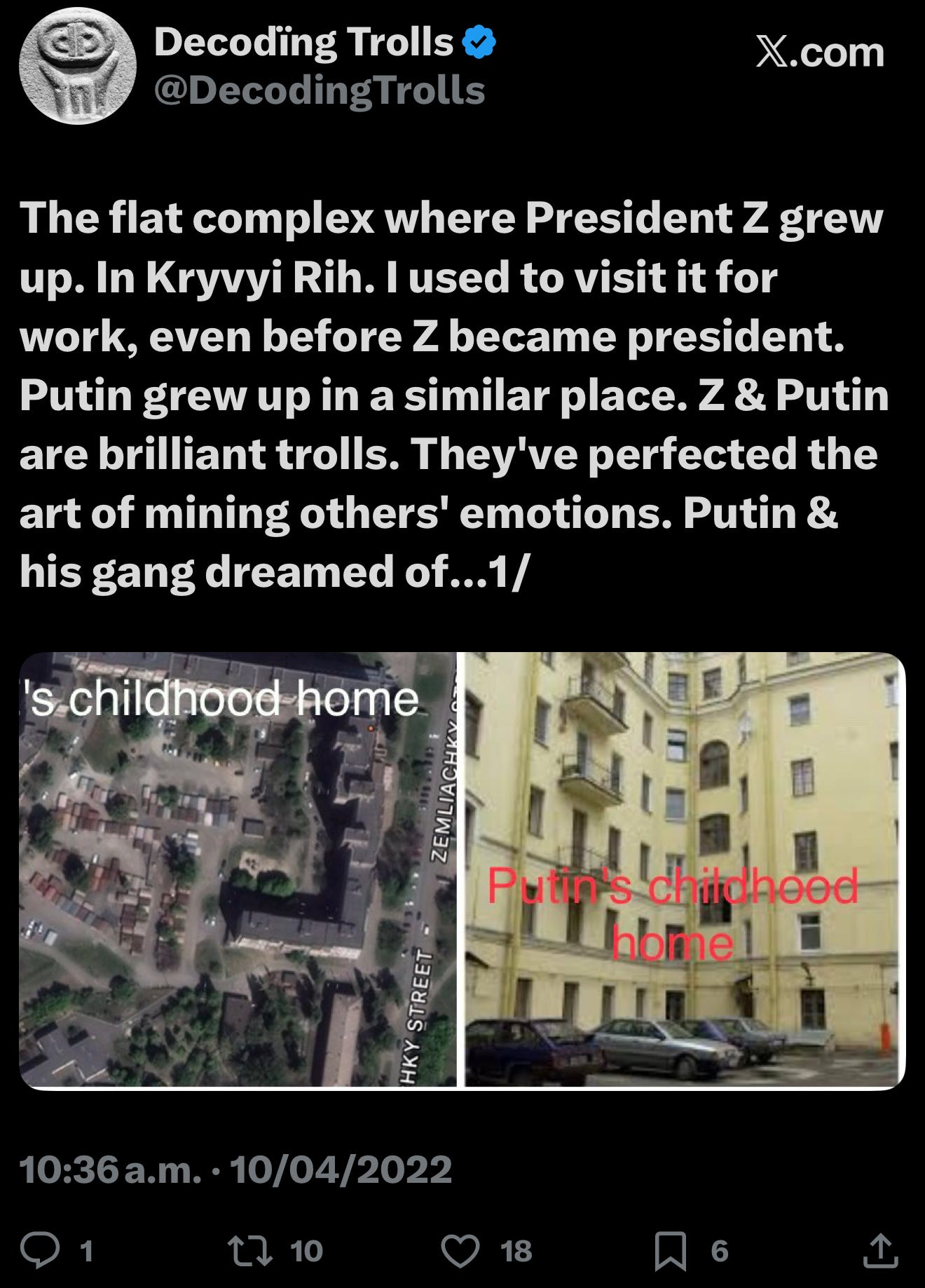 And so many people fell for this. So you scan for the manor, you’re looking for the manor, you’re looking for it. in any meme, you’re identifying its layers. So there’s lots of different layers to even this very simple, of course, Putin is a dictator and has done war crimes. But Z is no friend of the working class.
