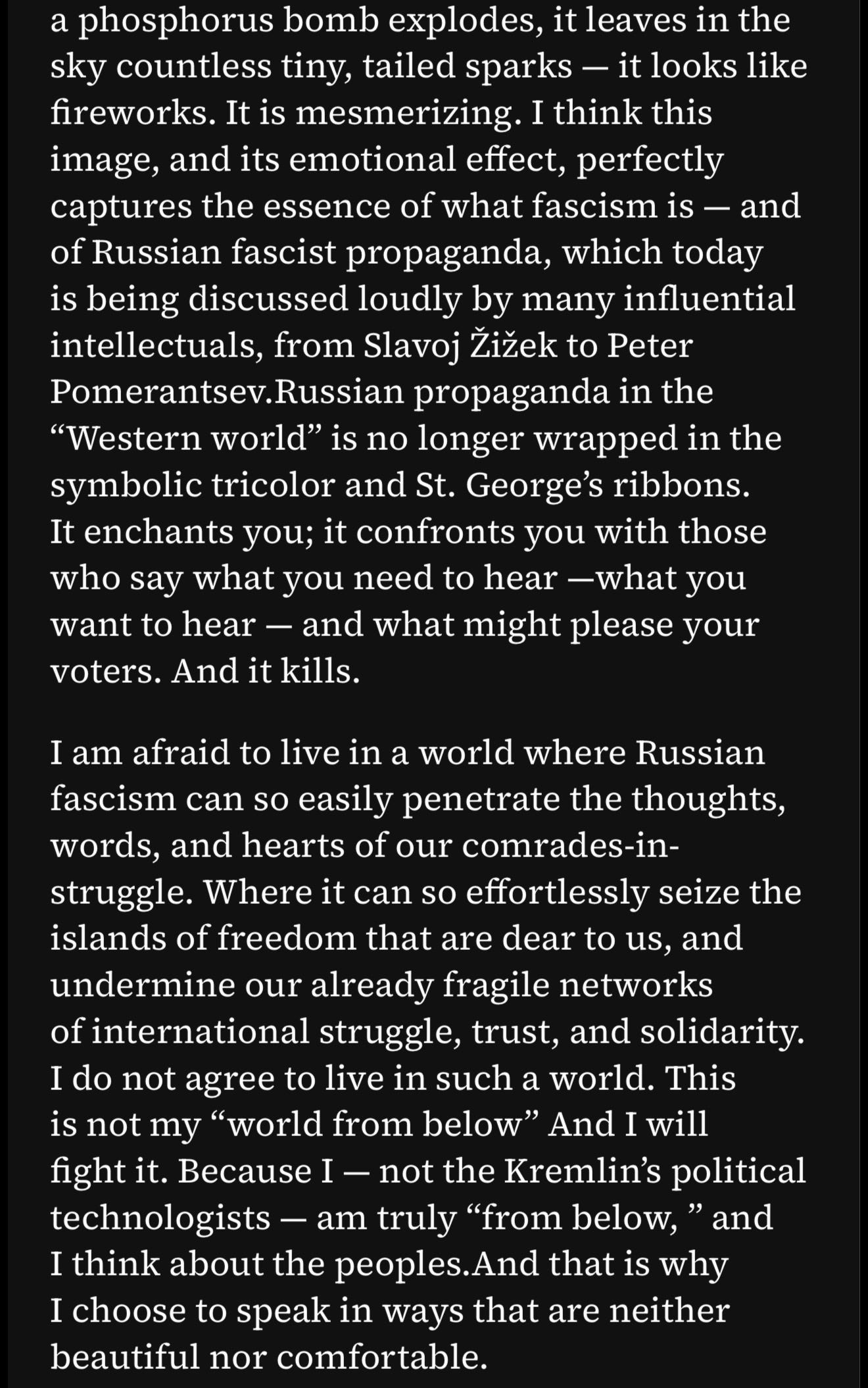 See here how Galina Rymbo, a poet, translator, feminist and anarchist of Moldovan-Romanian and Ukrainian origin who was born and raised in Western Siberia and now has found sanctuary in Ukraine wrote about what I call the Disinfolklore Universe: