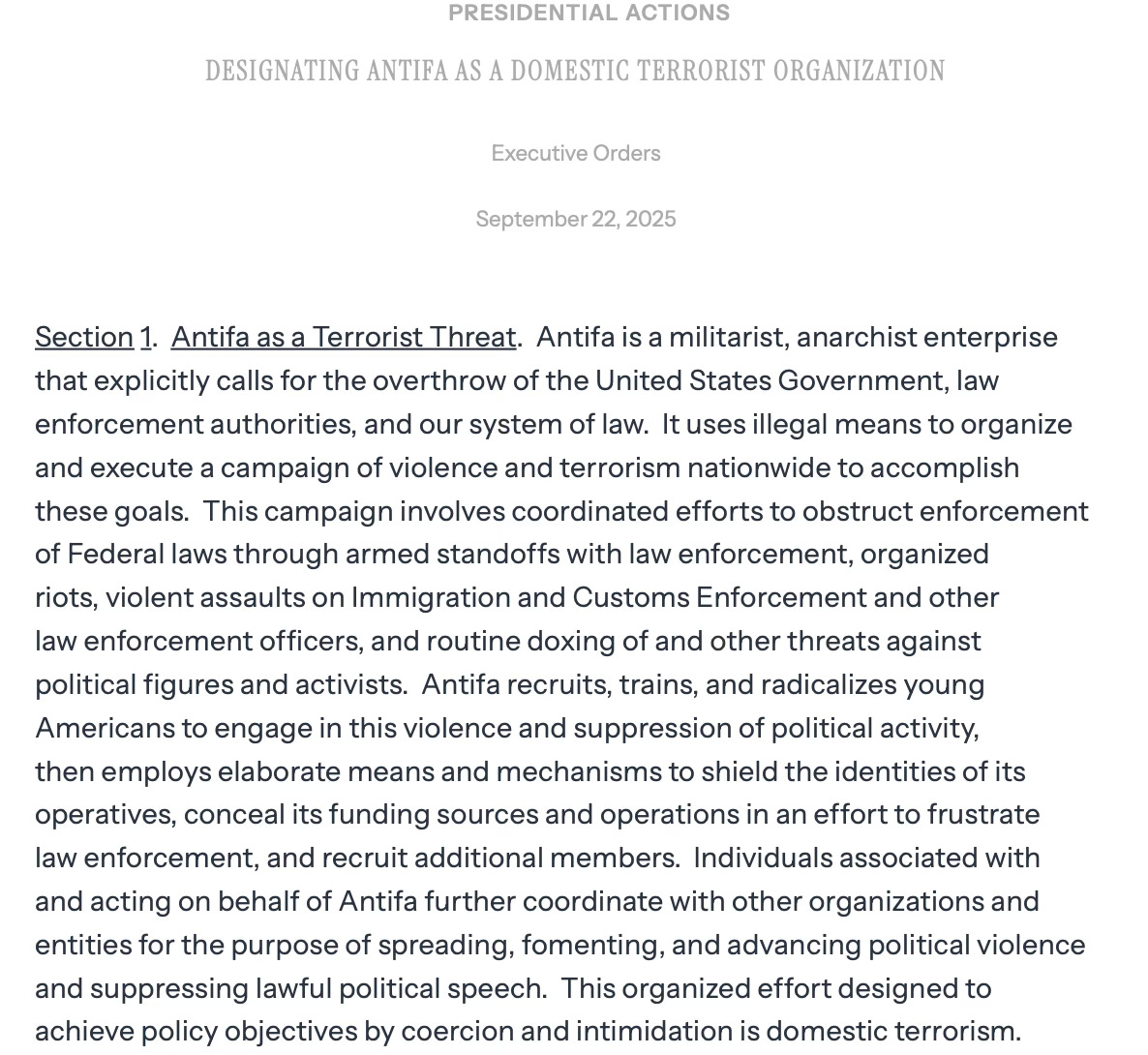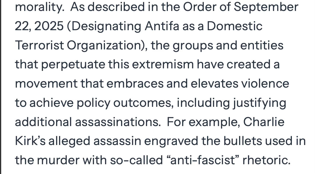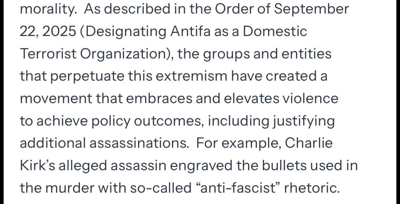 ) that use Disinfolklore about an entirely fictional character called ‘Antifa’ to justify entirely un-American activities by the Federal government.The policy framework for oppressing anyone the Federal Government chooses to is now completely grounded on fictional events which never happen such as the accusation by the U.S. President in NSPM-7 that the bullets used by the alleged murderer of his father’s Far Right hero Charlie Kirk were “engraved…with so-called ‘anti-fascist’ rhetoric”