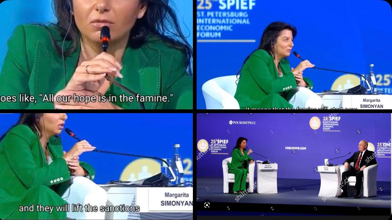 So what Russia accidentally discovered was that you could artificially create the sense of identity using disinfolklore. And there is something magical about that in the ordinary sense of the word, magic. Obviously disinfolklore stories, folklore stories have lots of magical elements to them. There’s an element of magical thinking to say, Simonyan, sitting on the dace at the St. Petersburg Economic Forum in June 2022, with Putler sitting beside her. She’s dressed as green, like a little green man herself.