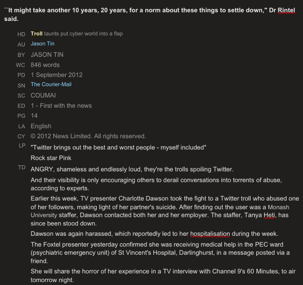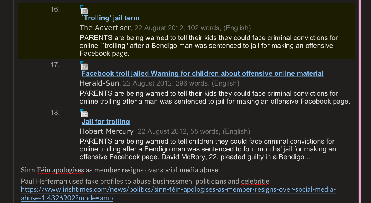 Because I had this folder, this ‘folklore’ folder on my computer from which I established, I think, in April 2020, where I started putting in stuff about trolls and about trolls as folkloric trolls. Then all of the work which I was doing, looking at trolls and trolling, which I talked about two episodes ago when I went through the Factiva series. Dow Jones Factiva database for 45,000 or something media sources globally and I got back to my query 65,000 returns.