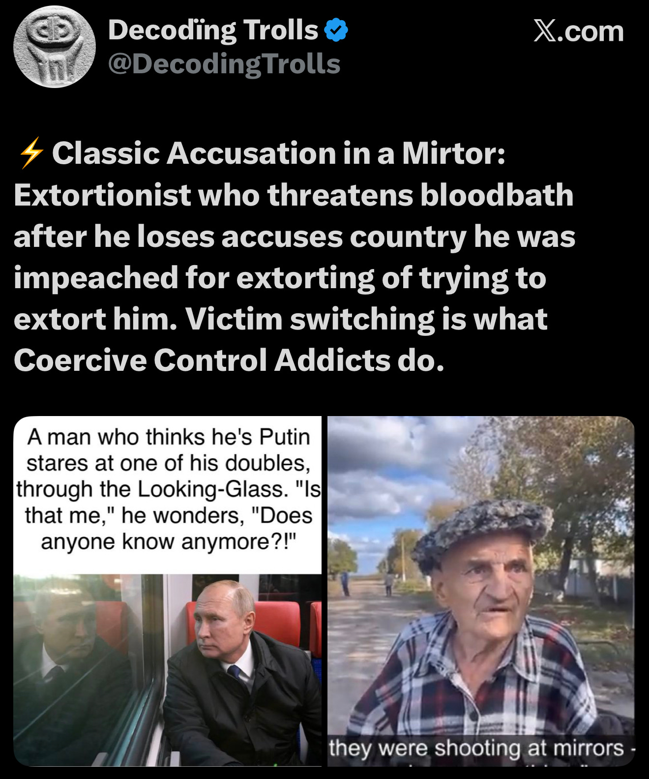 It’s my psychoanalytical explanation of Charlie Kirk’s murder. The casings containing antifa messaging on them. Basically, if you’ve come across the term accusation in the mirror or you understand what Putin has done, it’s a projection. It’s a revelation of intention. What is going to happen. It’s predictive data.