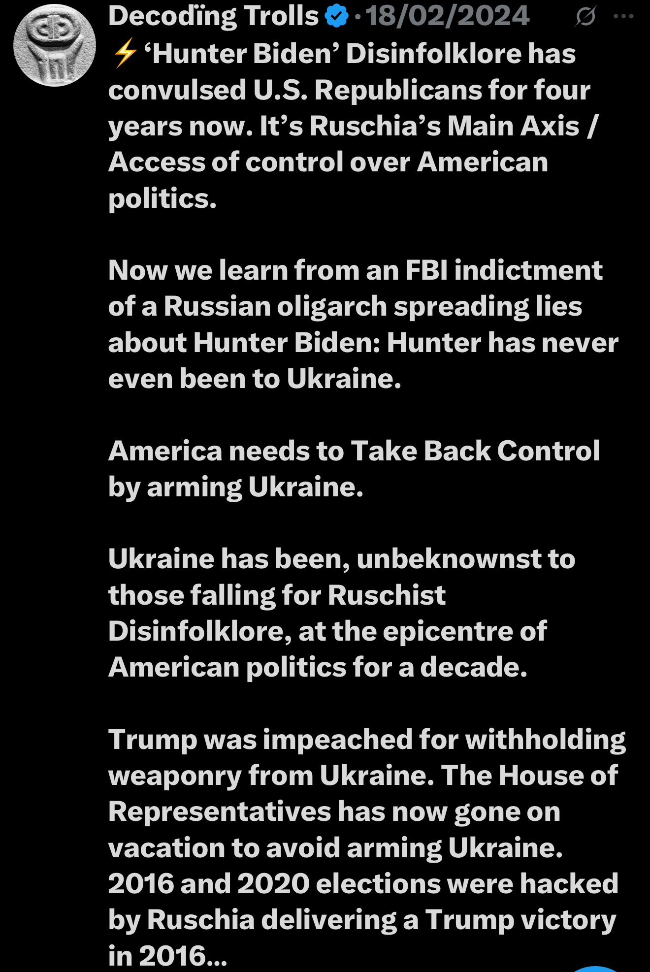 Ukraine itself, I’ve long maintained before I even understood how important Ukraine was for our culture history, that it has been the very center of US politics. Invisible to many countries since President Trump’s first election. As manifested in the impeachment and all of that malarkey leading up to it. The Hunter Biden troll.
