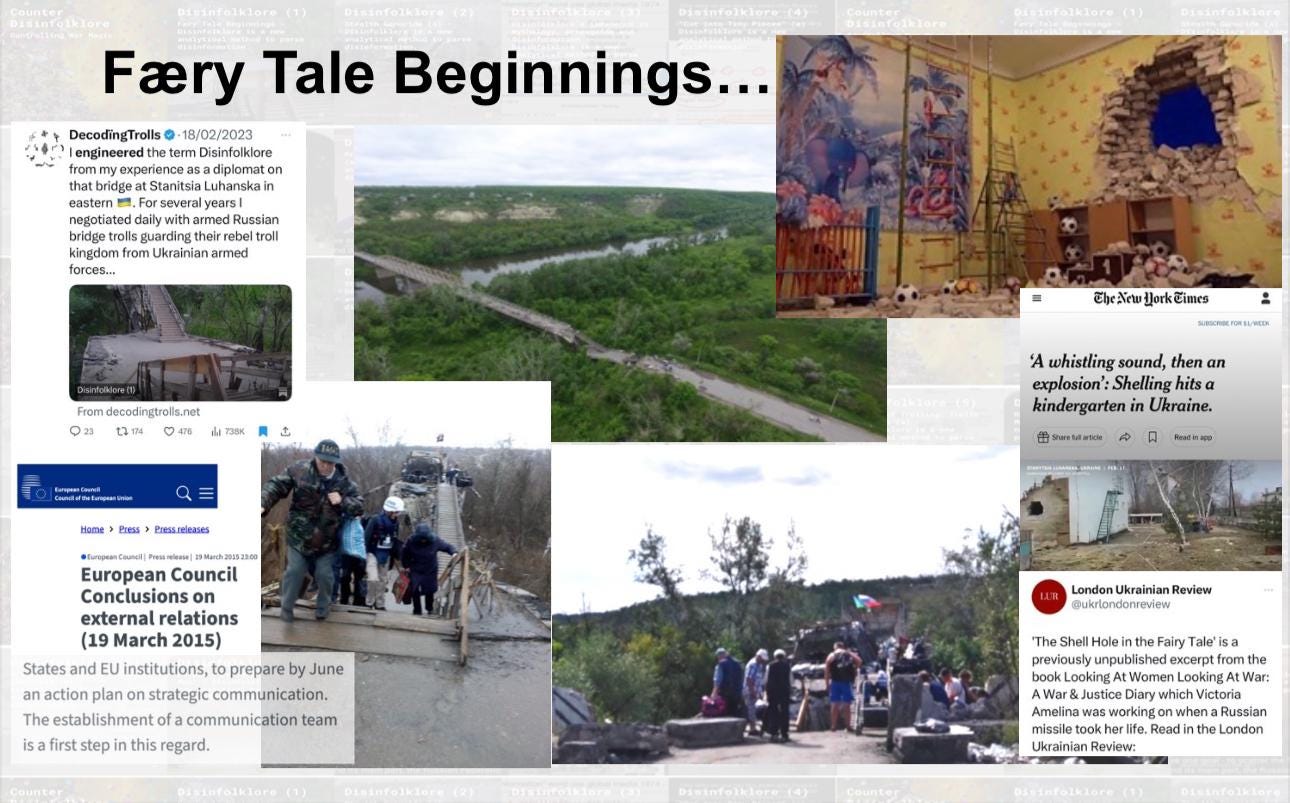 While I was in eastern Ukraine, in Stanytsia Luhanska, I encountered what I call the first Disinfolklore universe. For those who were not there, it is akin to what you saw with MAGA affecting people you knew. It goes from being a joke to actually being an identity-forming element. I engineered the term Disinfolklore from my experience as a diplomat on this bridge in Stanytsia Luhanska.
