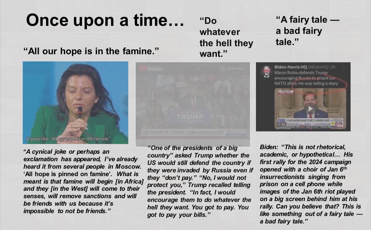 We will see in later chapters how Russian Disinfolklore managed to convince Ukrainians in Russia-occupied Ukraine that it was Ukrainians who were threatening them, not the Russian occupiers.